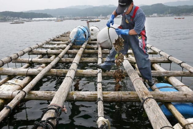 海はよみがえった 岩手 山田湾カキ養殖いかだ 日本経済新聞