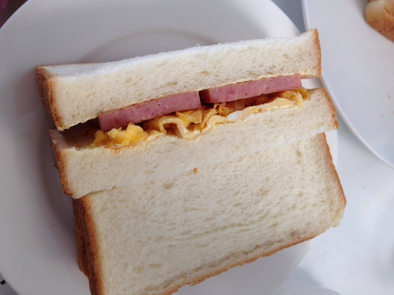 スパムと卵焼きのサンドで朝食 みいこの部屋