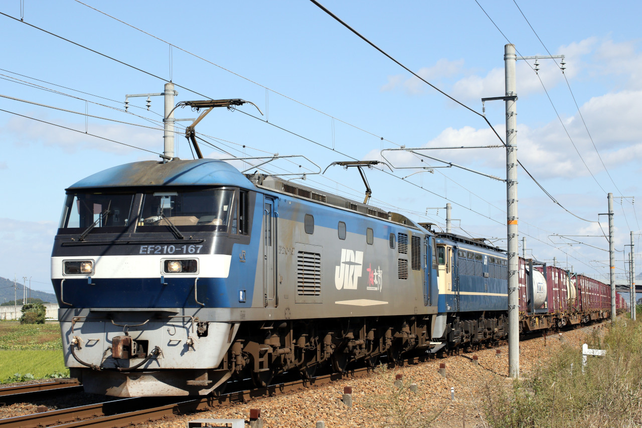 線路際の小さな幸せ 5085レ Ef210 167 Ef65 2101 Pfムド付 Jotがんばろう日本 Super Ur
