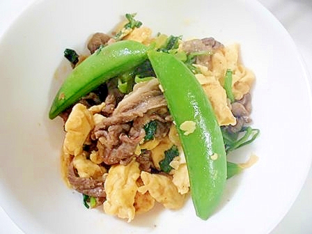 スナップエンドウと卵と牛肉のオイスターソース炒め レシピ 作り方 By くるりん家 楽天レシピ