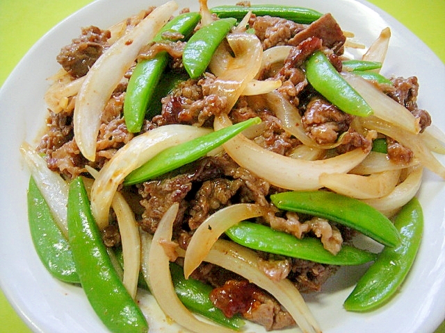 牛肉とスナップエンドウ新玉ねぎの甘辛炒め レシピ 作り方 By Mint74 楽天レシピ