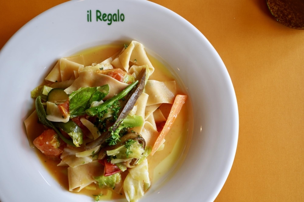 裏磐梯のイタリアンレストラン ホテル リストランテ イルレガーロ 自家製幅広パスタ 8種類の高原野菜とトマト