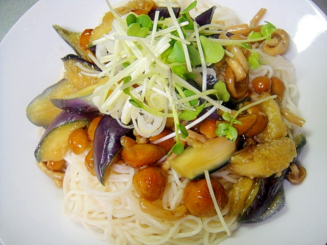 蒸し茄子となめこ乗せ素麺 レシピ 作り方 By Mint74 楽天レシピ