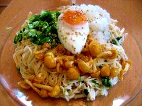 キムチなめこ納豆そうめん温泉たまごのせ Yuk Snapdish スナップディッシュ Id 5jelka