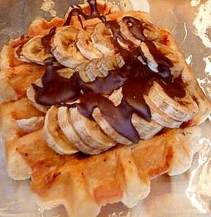 ワッフルにデコレーションしてもらいました ワッフル 食べ物のアイデア デコレーション